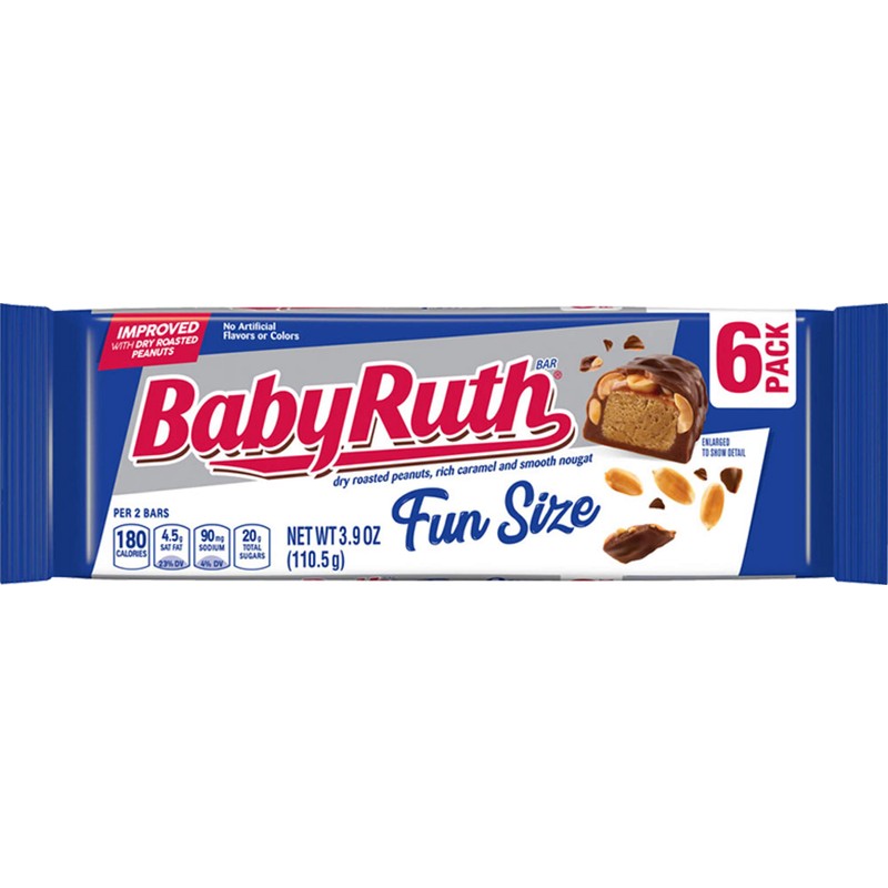 - THE CLASSIC BABY RUTH: Baby Ruth fun size bars are bursting with peanuts, caramel, & chewy nougat