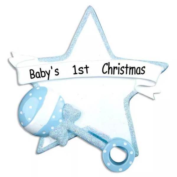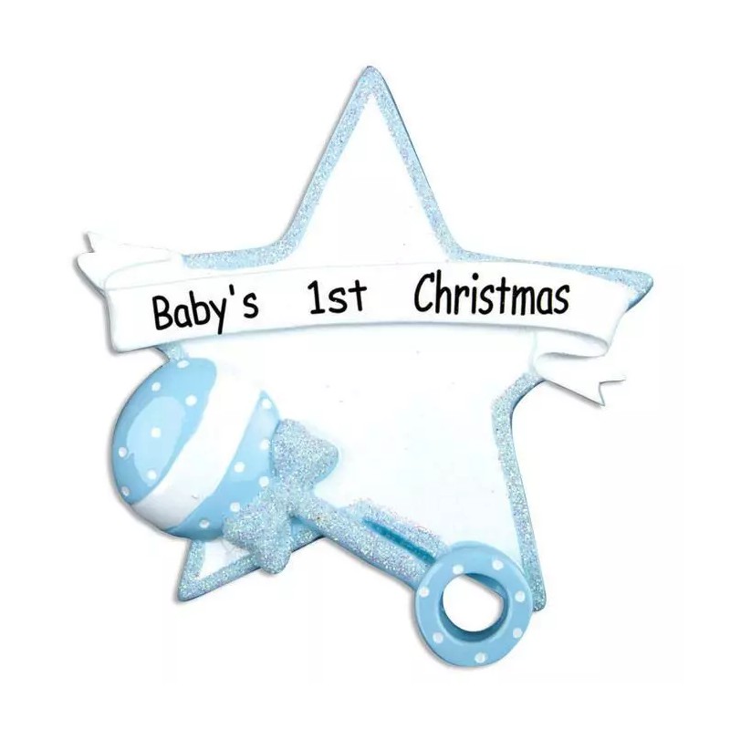 BABY'S 1ST BOY BLUE RATTLE STAR CHRISTMAS ORNAMENT GIFT PRESENT SHOWER