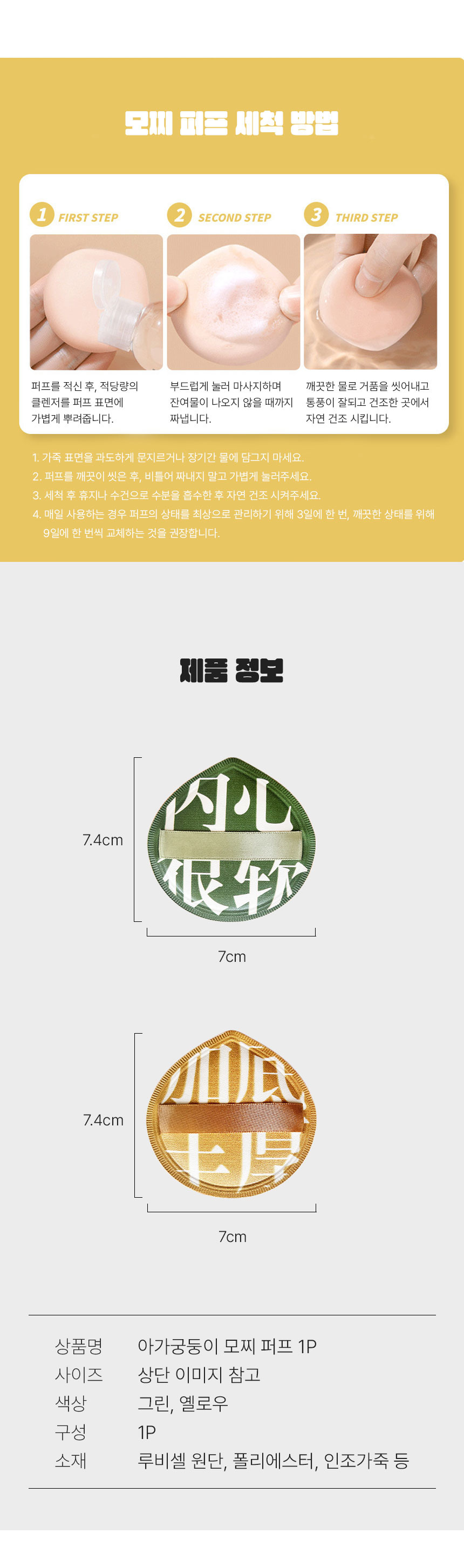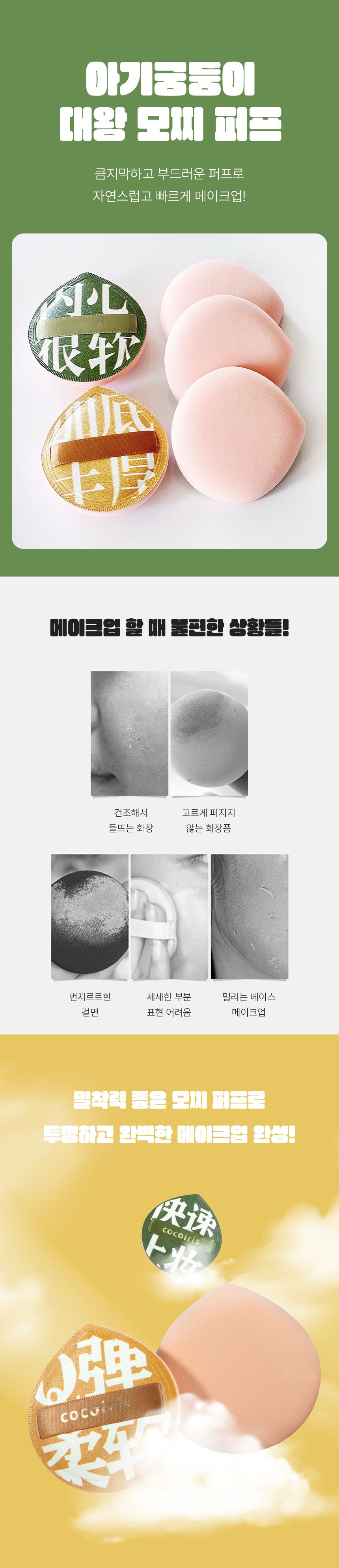 아기궁둥이퍼프 대왕 모찌 퍼프 메이크업 스펀지 - 02궁둥이퍼프-옐로우