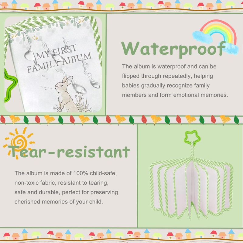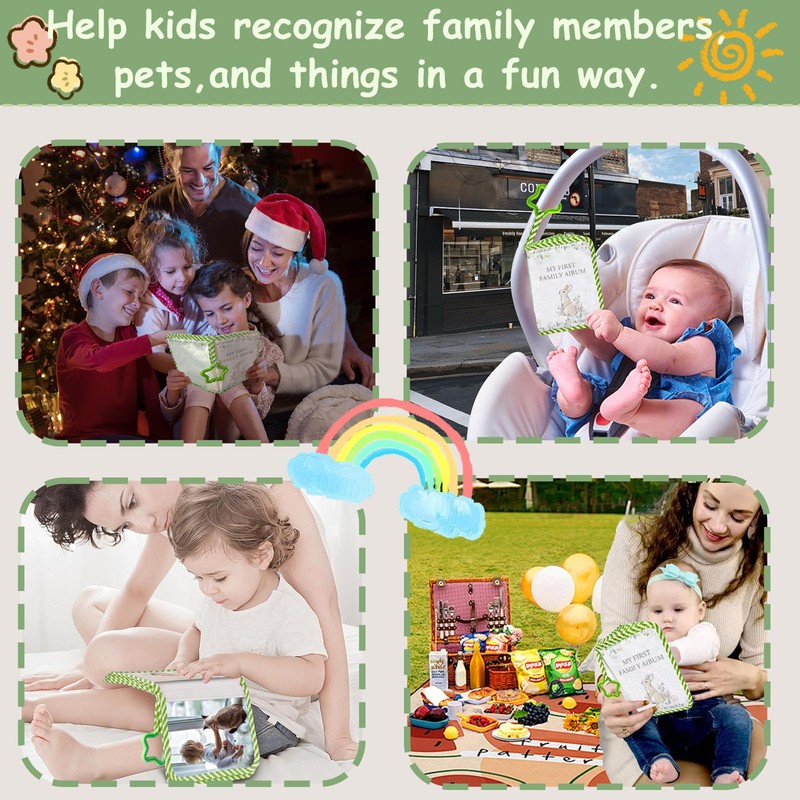 • Promotes Early Learning – Boosts visual development, memory, and social skills by using real family faces. Includes name labels to help babies associate images with words and build communication skills.
