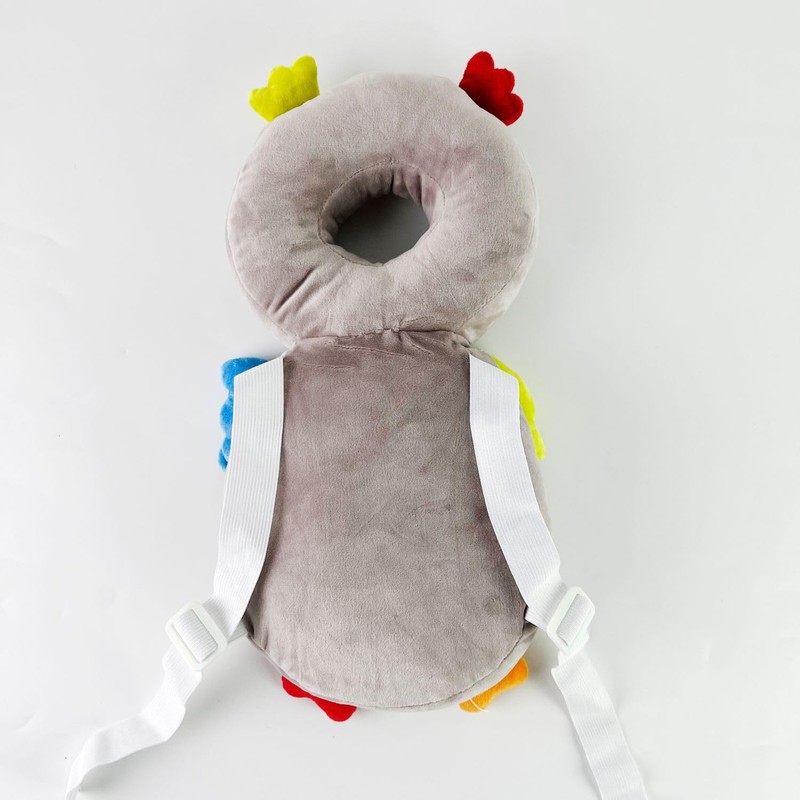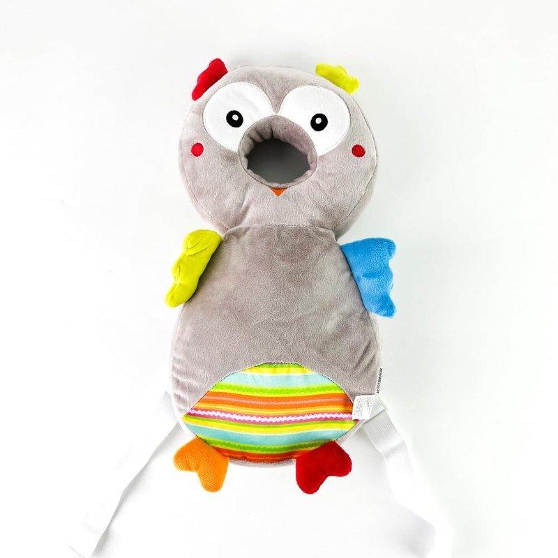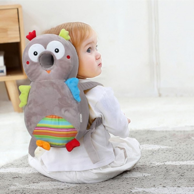 Baby Safety Head Protector Backpack Wear, Adjustable Toddlers Head Pad Cushion Backpack for Safety Baby Learning Walking Crawling (Plush-Owl, Soft Grey)
