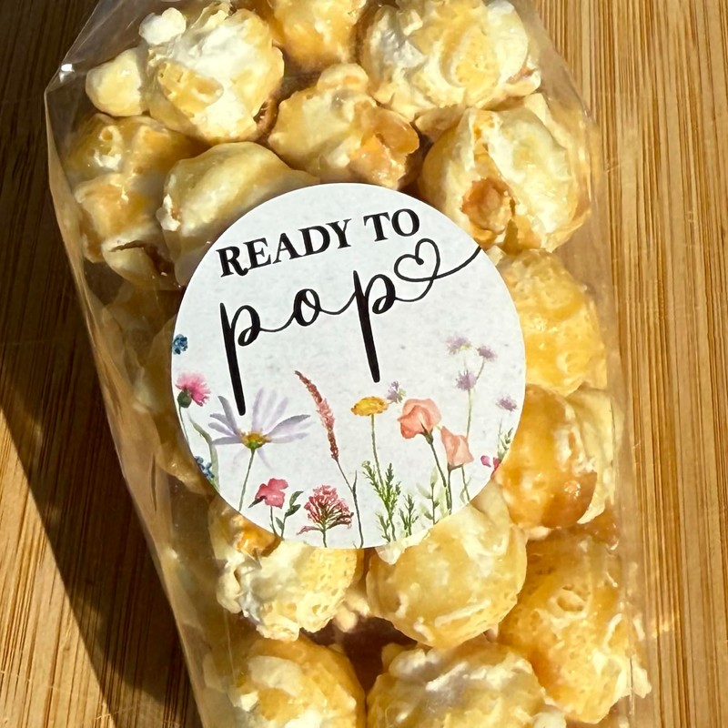 Baby Shower Favours - Ready to Pop - Popcorn Favour Bags - favour bags stickers and ties (Wildflower)