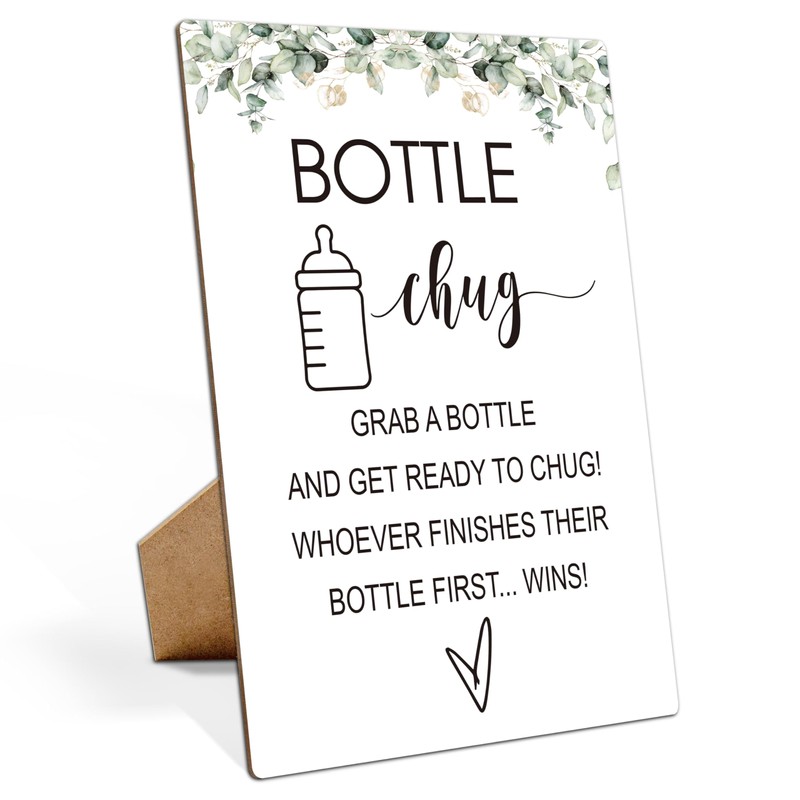 Baby Shower Games Bottle Chug Sign-8x11 Inches Greenery Wooden Sign Baby Gift for Baby Shower Gender Reveal Party, Gender Neutral Baby Bottle Shower Party Games Favors Supplies-4