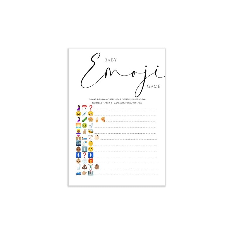 Baby Shower Games - Pack of 15 Baby Emoji Style Cards- White Minimal Elegant Design-Unisex-A5 Size (BSOBE15)