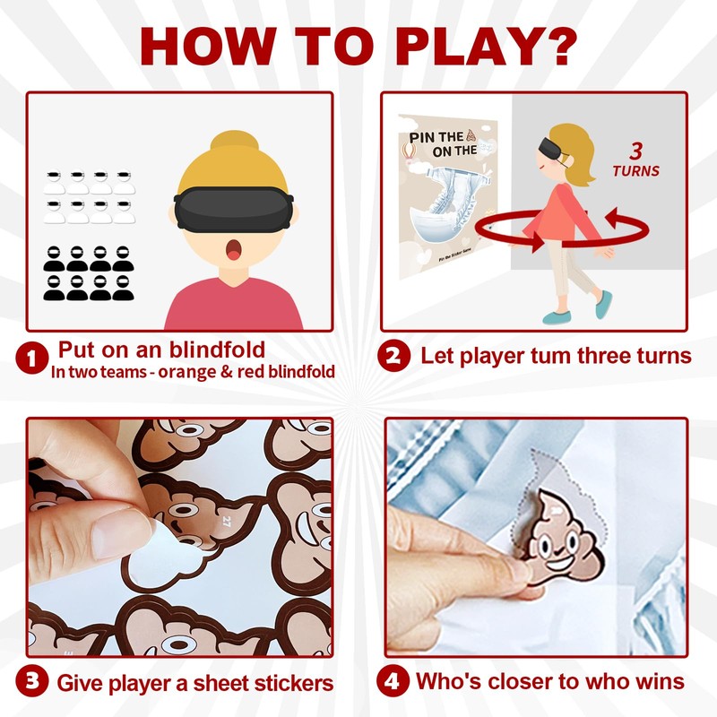 - Easy to Play - Hang the poster, blindfold the players, and let the fun begin! The player who pins the 'poopie' closest to the spot wins the game! This will be an unforgettable baby shower party!