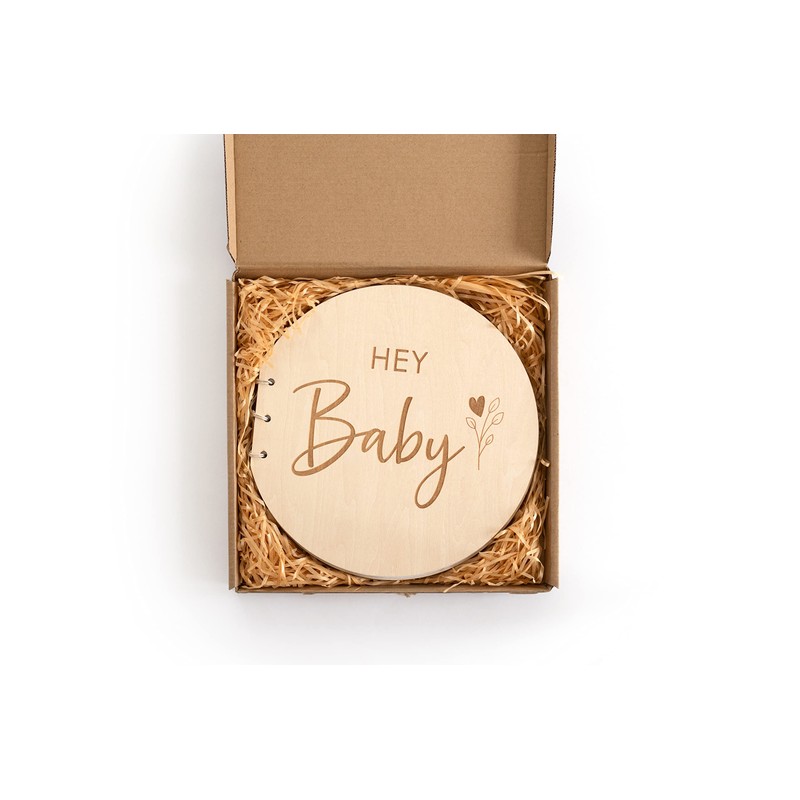 Baby Shower Guest Book with Wooden Cover, Baby Shower Memory Album, Hey Baby Guest Book, Baby Shower Girl and Boy, Gifts for a Baby Shower, Wooden Guest Book as Baby Shower Gift - Mikito