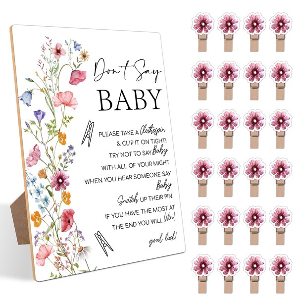 Baby Shower Sign, Don't Say Baby Baby Shower Game, for Boho Baby Shower Decorations, Neutral Baby Shower Decorations, Mini Clothespins for Baby Shower, 1 Wooden Sign & 50 Mini Clothespins Set-4