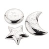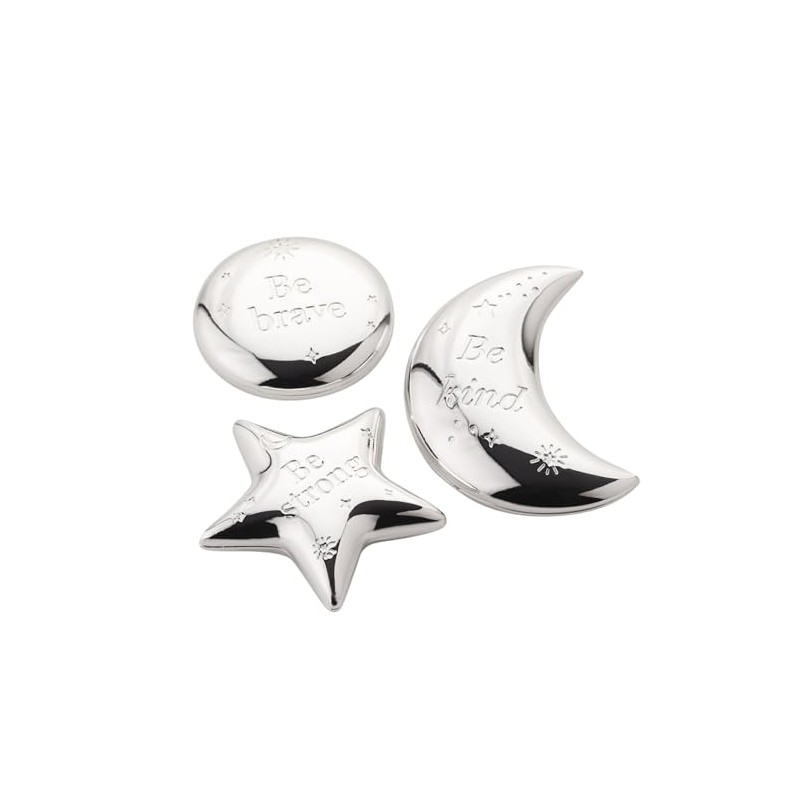 - The Silver plated Charms from the Bambino range are a set of 3, featuring a Circle, Moon, and Star design.