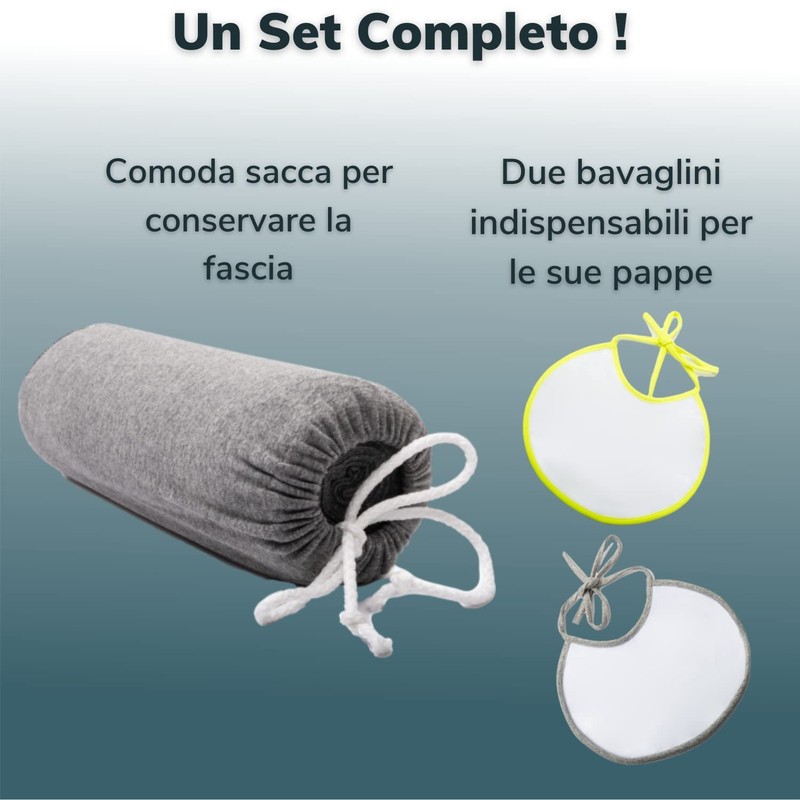 Baby Sling (100% Made in Italy) with 2 Bibs Including - Sling Made of Organic Cotton - Baby Sling Newborn Soft, Lightweight, Breathable, Suitable for up to 15 kg