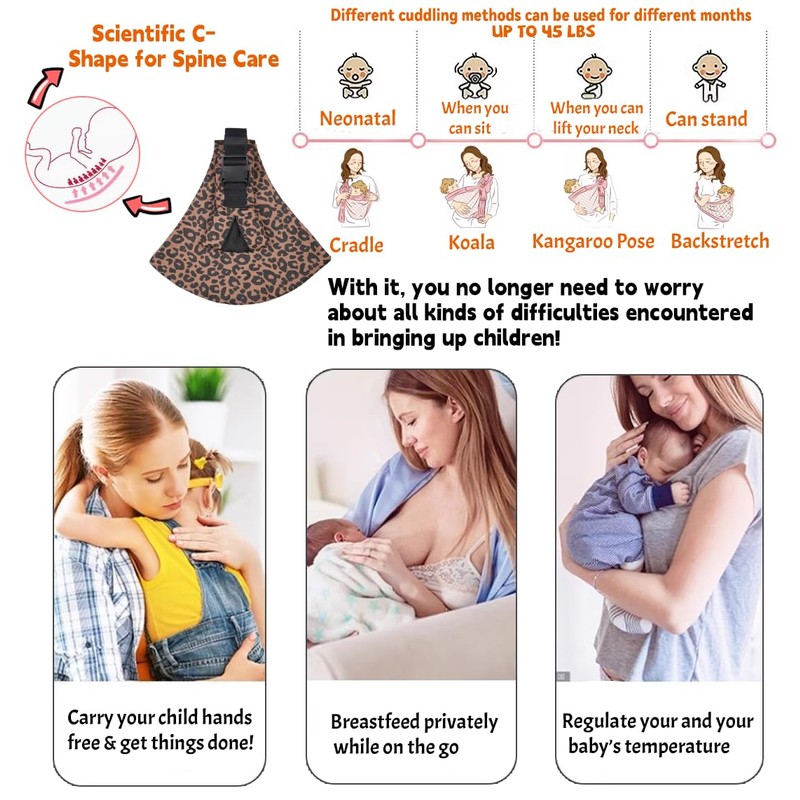 Baby Sling Carrier, Adjustable Baby Carrier, Adjustable Sling Easy Toddler Carrier Comfortable Baby Wrap Carrier Baby Carrier Wrap for Newborn Up to 3-36 Months (Leopard New)