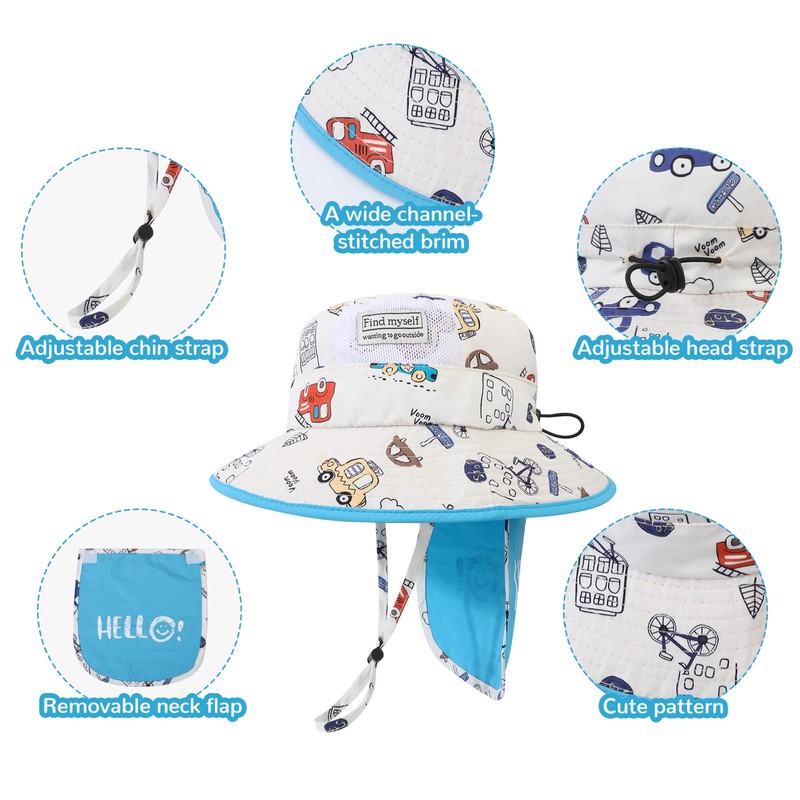 - 【 Occasion】: Kindersommerhut mit breiter Krempe und abnehmbarem Nackenschutz, Baby wird unter der Sonne kühl bleiben, ideal für Strandreisen, Wandern, Camping oder jede Outdoor-Aktivität im Frühling, Sommer, Herbst