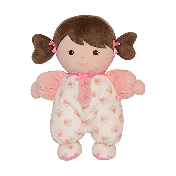 Baby Starters Plush Baby Doll with Rattle, Brunette Olivia, Pink, 9 inch