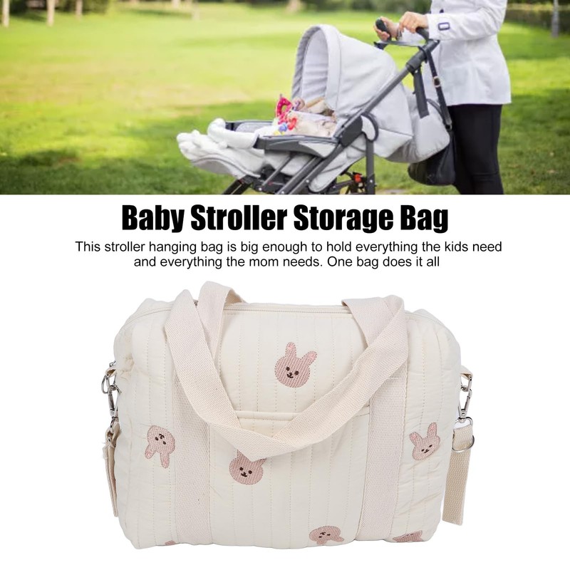 Baby Stroller Bag, Multifunctional Check Bag, Zipper Embroidery, Reusable Handbag, Nappy Bag (Rabbit Bag)