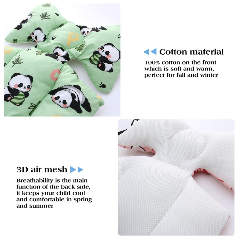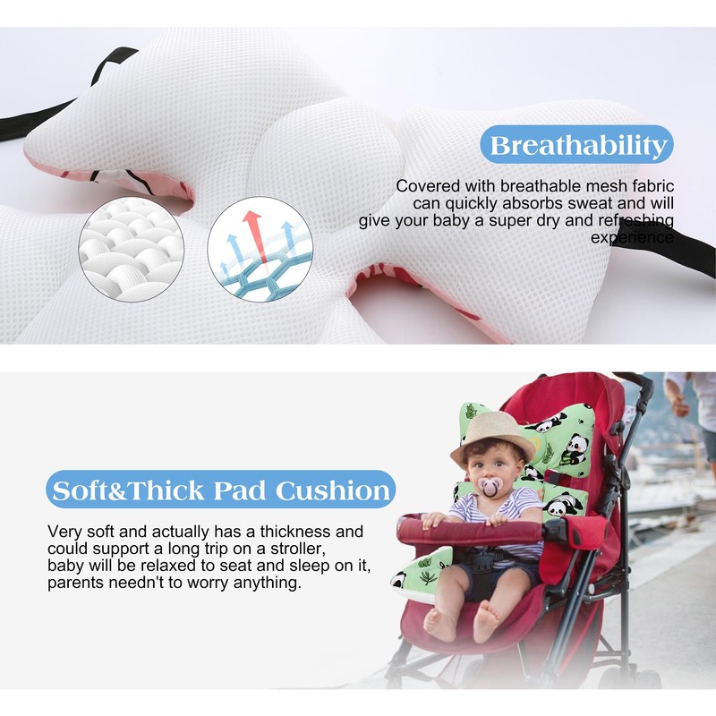 Baby Stroller Cushion, Baby Pushchair Seat Liners Pram Liner Universal Baby Stroller Seat Cushion Soft and Breathable 3D Air Mesh Cotton Pushchair Accessories (Green Panda)