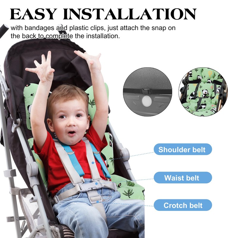 - QUICK & EASY INSTALLATION: Each baby stroller cushion has bandage and plastic clip to make it simple to install stroller straps, keeps the stroller insert from shifting.
