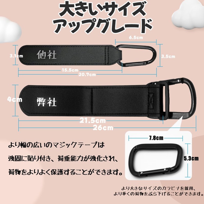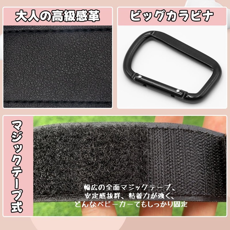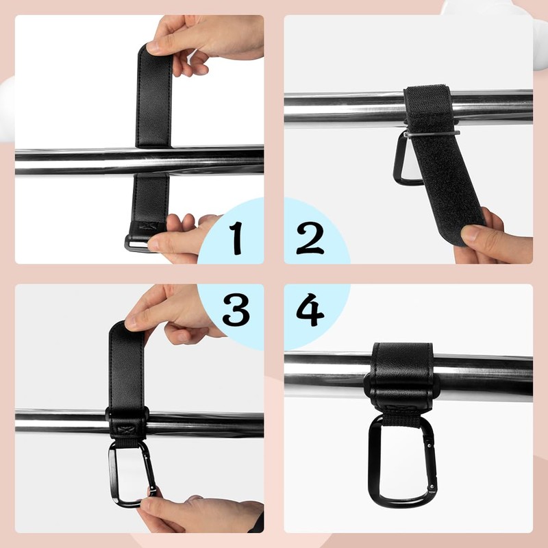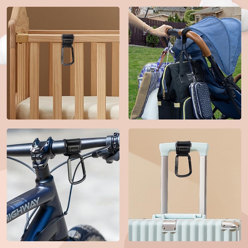 Baby Stroller Hook, Velcro Carabiner, Buggy Hook - YAWALL Baby Stroller Hook, Leather Carabiner Hook, Air Buggy Hook, Pet Cart, Luggage Hanger, 2 Pcs Large
