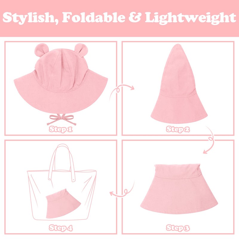 - UNIQUE BEAR EARS: This baby sun hat with bear ears makes your baby more adorable, your cute baby will draw more attention on the street! Due to the special and superior fabric of this toddler sun hat, the toddler hat can keep in a stereoscopic shape and the lovely bear ears are not easy to droop.