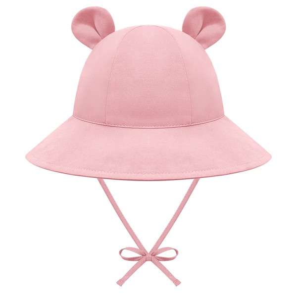 Baby Sun Hat Toddler Hats for Boys Girls Infant Sun Hat Baby Girl Hats with Bear Ears Wide Brim UPF 50+ Beach Hat, A Pink, 0-6 Months
