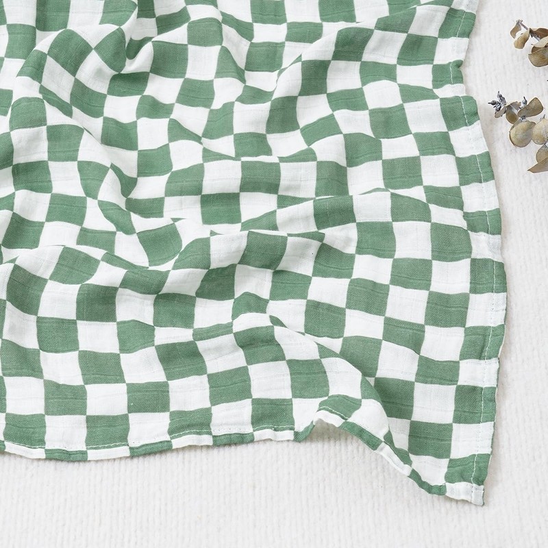 Baby Swaddle Blanket - Soft 100% Cotton Swaddles for Newborn - Large Muslin Cloths - Pack of 3 - Baby Essentials for Newborn -Unisex - 120x110cm (Checkered)