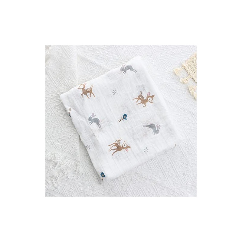 Baby Swaddle Wrap, Organic Bamboo and Cotton Large Blanket 120 x 110cm (Deer)