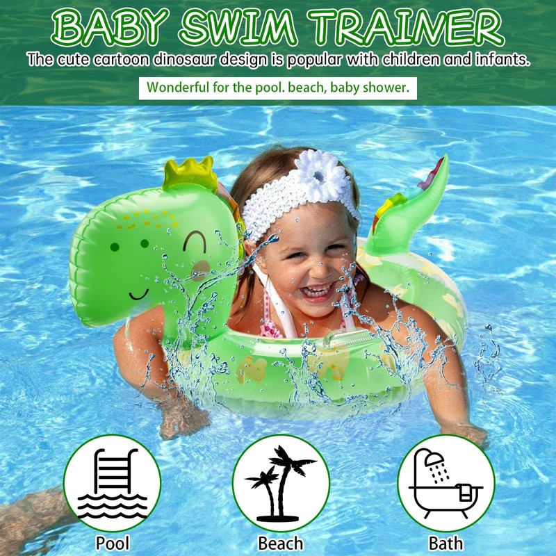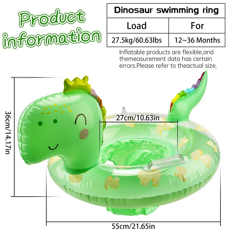 - 【Fall in Love with Swimming】 The handle dinosaur sitting ring is very suitable for babies to learn how to swim and play in water in summer. You can use it in the swimming pools, bathtubs or beaches. And safe rubber ring will stimulate the baby's early learning and growth, make the baby like swimming, and exercise the coordination of the body since childhood. A great pool toys - perfect baby travel essentials!