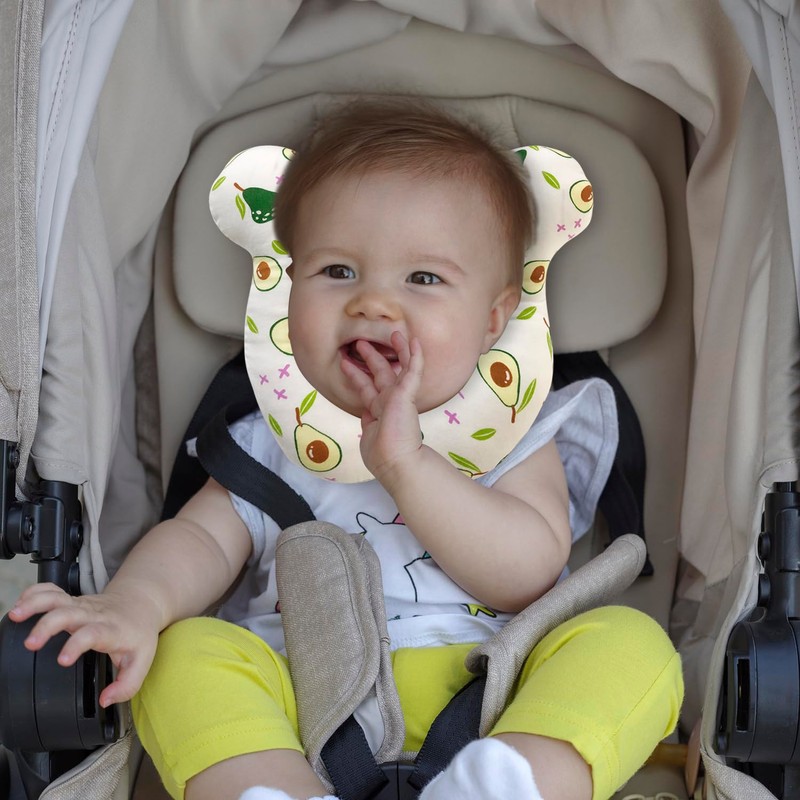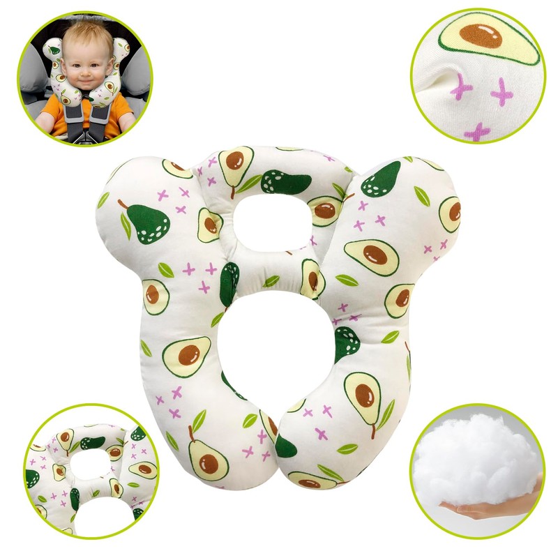 Baby Travel Pillow, Infant Kid's Cushion Soft and Skin Friendly for Car Seat, Pushchair and Stroller (White Avocado)