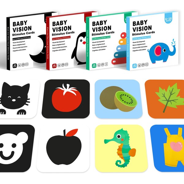 • 【High-Contrast Design】: Black and white patterns are suitable for newborns, and gradually transition to bright colors for older babies. These baby vision stimulus cards can enhance visual tracking, pattern recognition, and color differentiation.