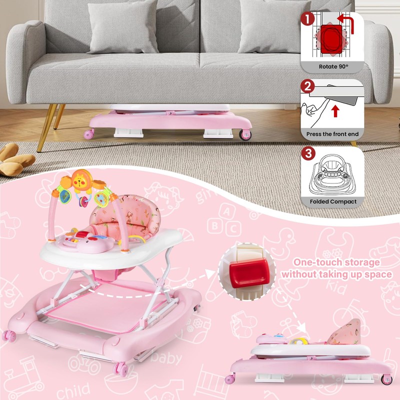RefoereBabe Baby Walker with Wheels, 5 in 1 Baby Walkers for Boys Girls 6-12 Months, Foldable Walker Baby with Bouncer & Feeding Tray, Music, Adjustable Heights