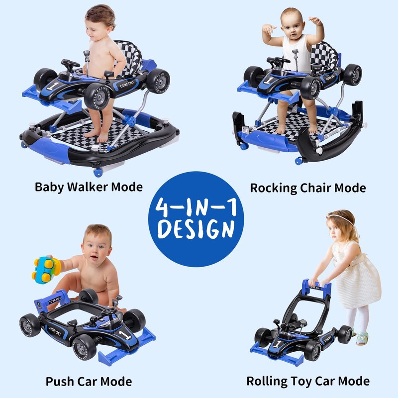 - Switch Between 4 Different Modes: Baby walker can be easily converted into 4 modes, including walker mode, baby push mode, push cart mode and rolling toy car mode, to meet the exploration needs of babies at different stages, and grow up with your baby, suitable for 6-18 months baby