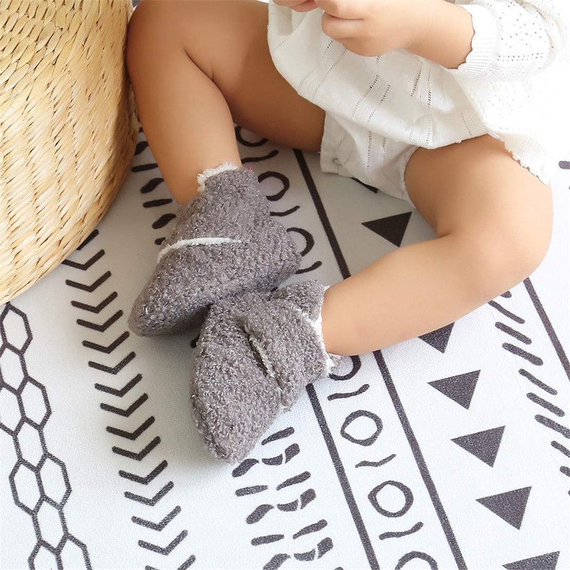 Baby Winter Warm Booties Newborn Boys Girls Soft Fleece Boots Non Slip Sole First Walker Shoes Unisex Infant Snow Slipper Socks 12-18 Months C Grey