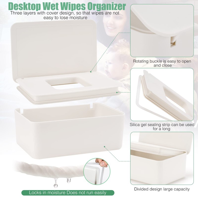 Baby Wipes Dispenser, Wipe Holder for Baby & Adult,Keeps Wet Tissue Fresh, Non-Slip Wipes Case, Flushable Wipe Container with Sealing Design Lid