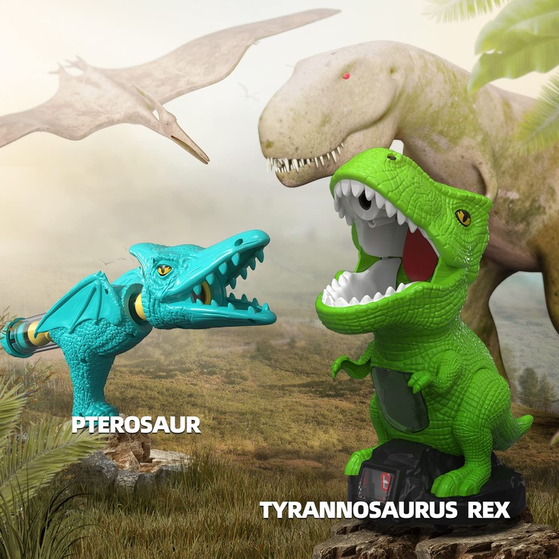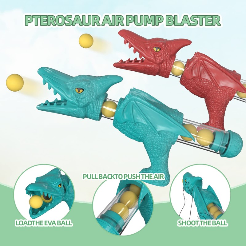 - Dinosaur Lovers Must Have - Unlike the ordinary air pump blaster, ours is a Pterosaur which is cooler for kids. And the target is the Tyrannosaurus Rex, which all children love.