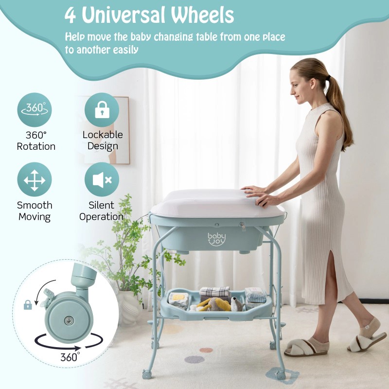 Babyjoy Baby Changing Table w/Bathtub, Folding & Portable Diaper Station w/Wheels Blue