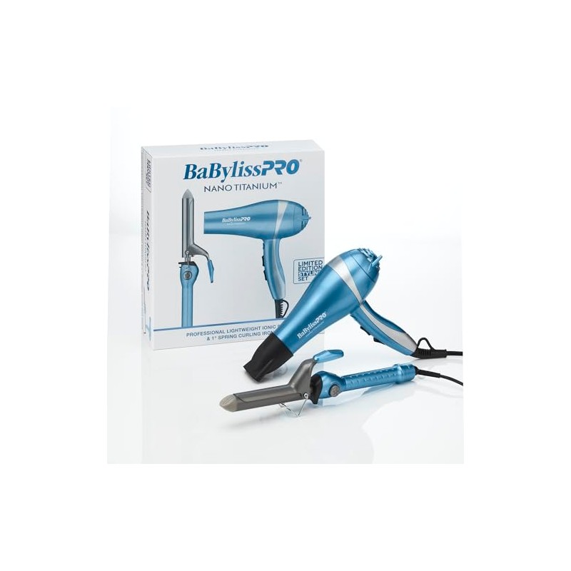 BaBylissPRO Nano Titanium Professional Lightweight Ionic Hair Dryer and 1" Spring Curling Iron