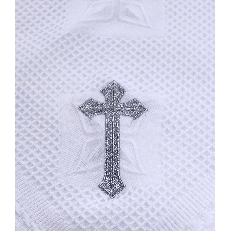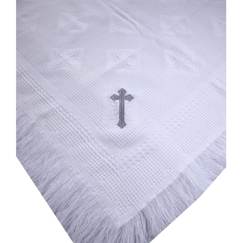 BabyPrem Baby Blanket Shawl Cross Christening Baptism Knitted Fringe 122 x 122cm White