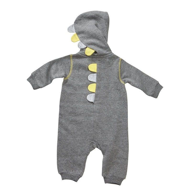 - Baby boys dark grey marl all in one with dinosaur spine fabric plates detail by Babytown