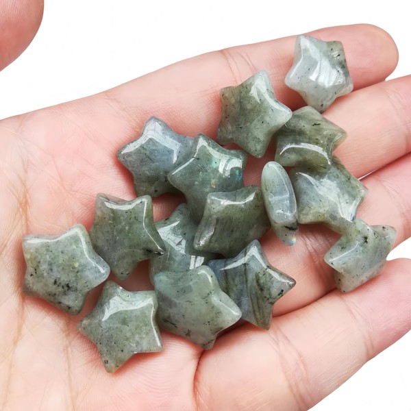 Bacatgem 10Pcs Labradorite 0.6" Star Shaped Crystals Thumb Worry Stones,Haped DIY Pendant