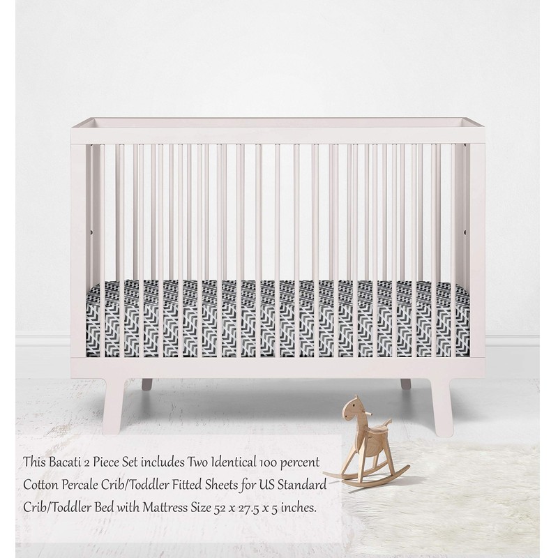 Bacati - 2 Pack Crib Fitted Sheets - Grey Steele Tracks Soft Breathable 100% Cotton Percale Baby Sheets - Fits Standard 28 x 52 X 5 inches Crib & Toddler Mattresses