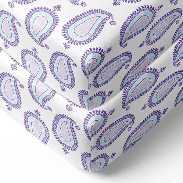 Bacati - 2 Pack Paisley Floral 100 Percent Cotton Percale Universal Baby US Standard Crib/Toddler Bed Fitted Sheets (Aqua Lilac Purple, Paisley)