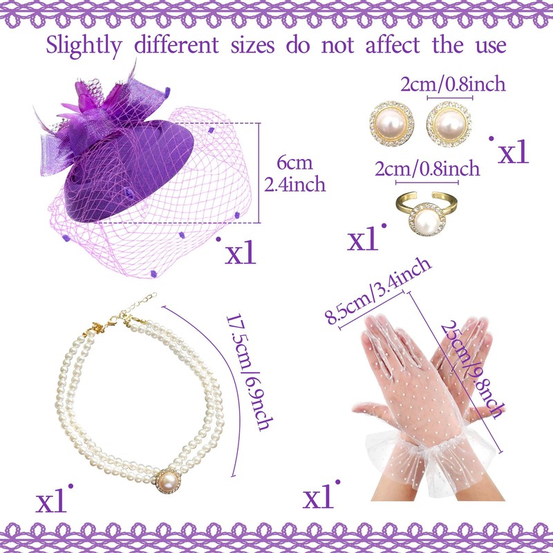 - You will receive: 1 x hat, 1 x pearl necklace, 1 x pearl ring, 1 pair of pearl earrings, 1 pair of gloves