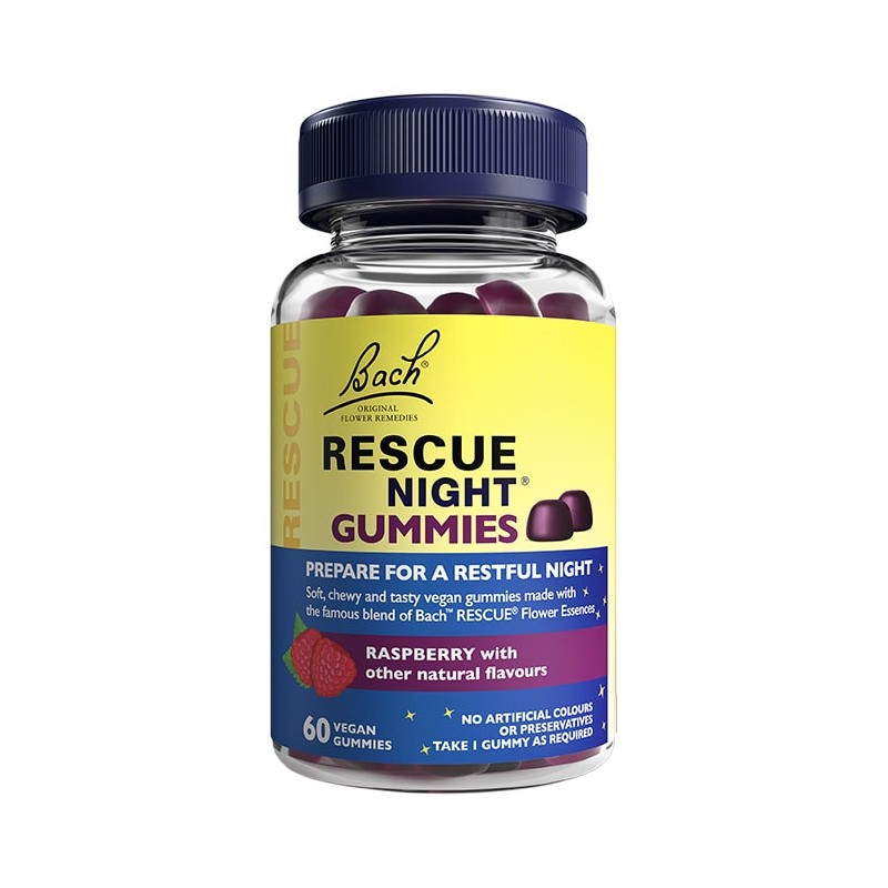 New Bach RESCUE Night Gummies are easy-to-take at bedtime to help prepare for a restful night's sleep.