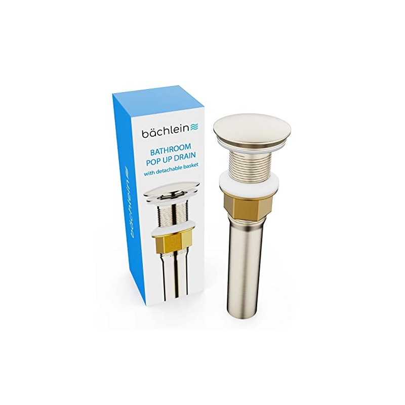 Bächlein bathroom sink drain without overflow - sink stopper with pop up function - Brushed Nickel pop up bathroom sink drain incl. 3 extra seals and installation manual - german high quality brand