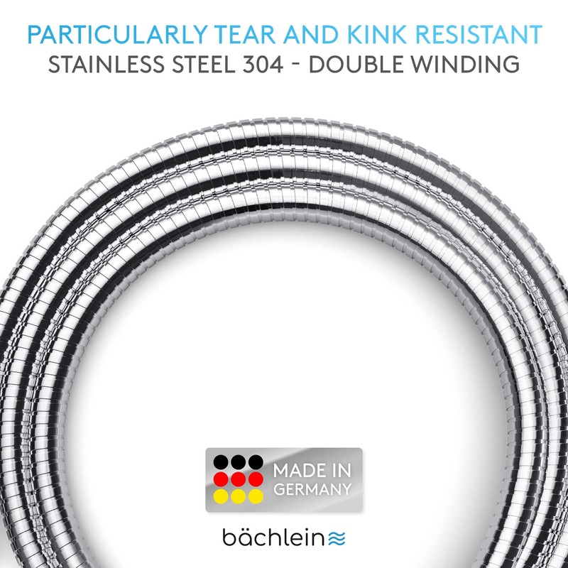 Bächlein Stainless Steel 304 Shower Hose with Double Anti-Twist Protection, Flexible and Kink-Resistant Shower Hose in 1.6m Length - Made in Germany, Universal G½" Connection Dimension.
