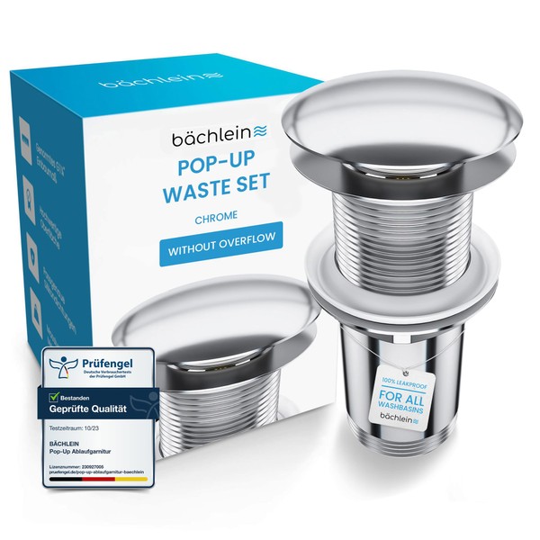 Bächlein Universal Drain Set Without Overflow (Chrome) - Brass Drain Valve Drain Set - Installation with Instructions