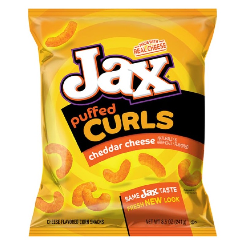 Our Jax Puffed Curls are made with real cheddar cheese and have a unique