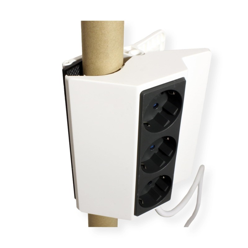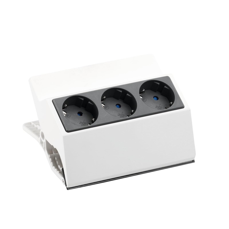 - Clampable socket strip – the Peggy power strip from Bachmann is equipped with a sturdy clamping device made of robust plastic and can therefore be placed flexibly.
