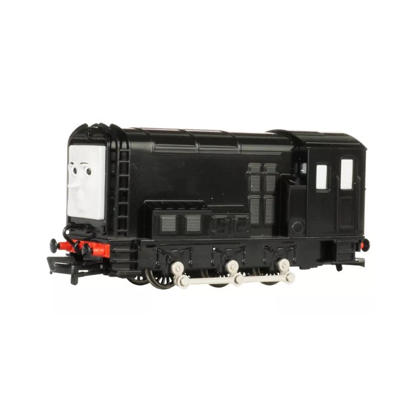 THOMAS & FRIENDS™ GRUMPY DIESEL ENGINE w/Moving Eyes - HO Scale. Bachmann carefully reproduces your favorite Thomas & Friends™ characters in HO scale.  All locomotives feature realistic faces with moving eyes, operating HO scale electric drive mechanisms,  highly detailed plastic body shells, all-metal wheels, and international-style hook-and-loop couplers.