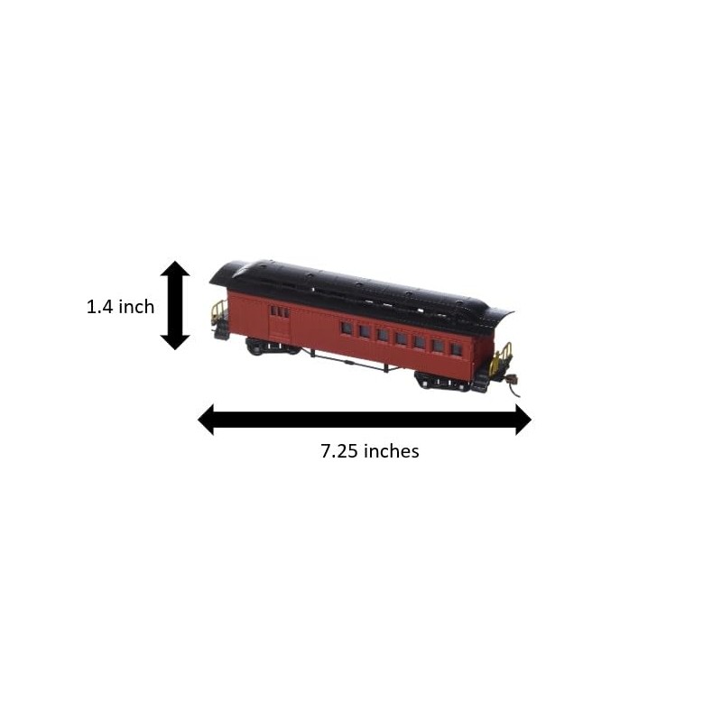 1860 - 1880 Passenger Cars - COMBINE - PAINTED, UNLETTERED - RED - HO Scale. Silver Series rolling stock features: blackened metal wheels, body mounted couplers, non-magnetic axles.