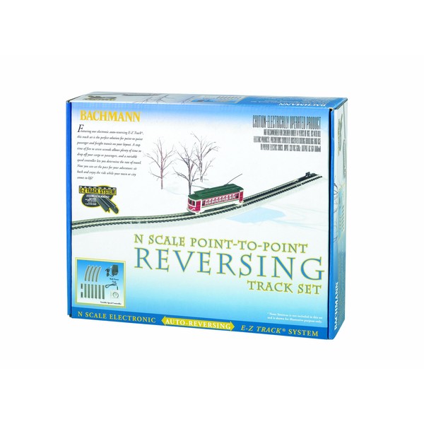 E-Z Track Nickel Silver E-Z Track Auto-Reversing System N Scale. Featuring our electronic auto-reversing E-Z Track, this track set is the perfect solution for point-to-point passenger and freight transit on your layout. A stop time of 5 to 7 seconds allows plenty of time to drop off your cargo or passengers, and a variable speed controller lets you determine the speed of travel. Add-on sections are also available (Item Nos. 44848 and 44849). The Nickel Silver E-Z Track Auto-Reversing Track System includes, 4 pieces of 5" straight, Auto- reversing E-Z Track, 4 pieces of 11.25" radius curved auto-reversing E-Z Track, 2 pieces of 5" straight E-Z Track, 2 Hayes bumpers, power pack and variable speed controller.
