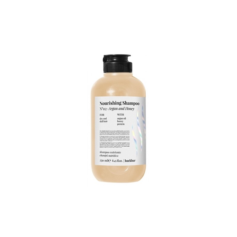 Nourishing shampoo n°2 Back Bar. Its unique formula with argan oil and honey makes it the perfect product to restore vitality and shine to your hair, while preserving its lightness. No matter what the weather or daily stresses, this nourishing shampoo is the ideal partner for sublimated hair every day.